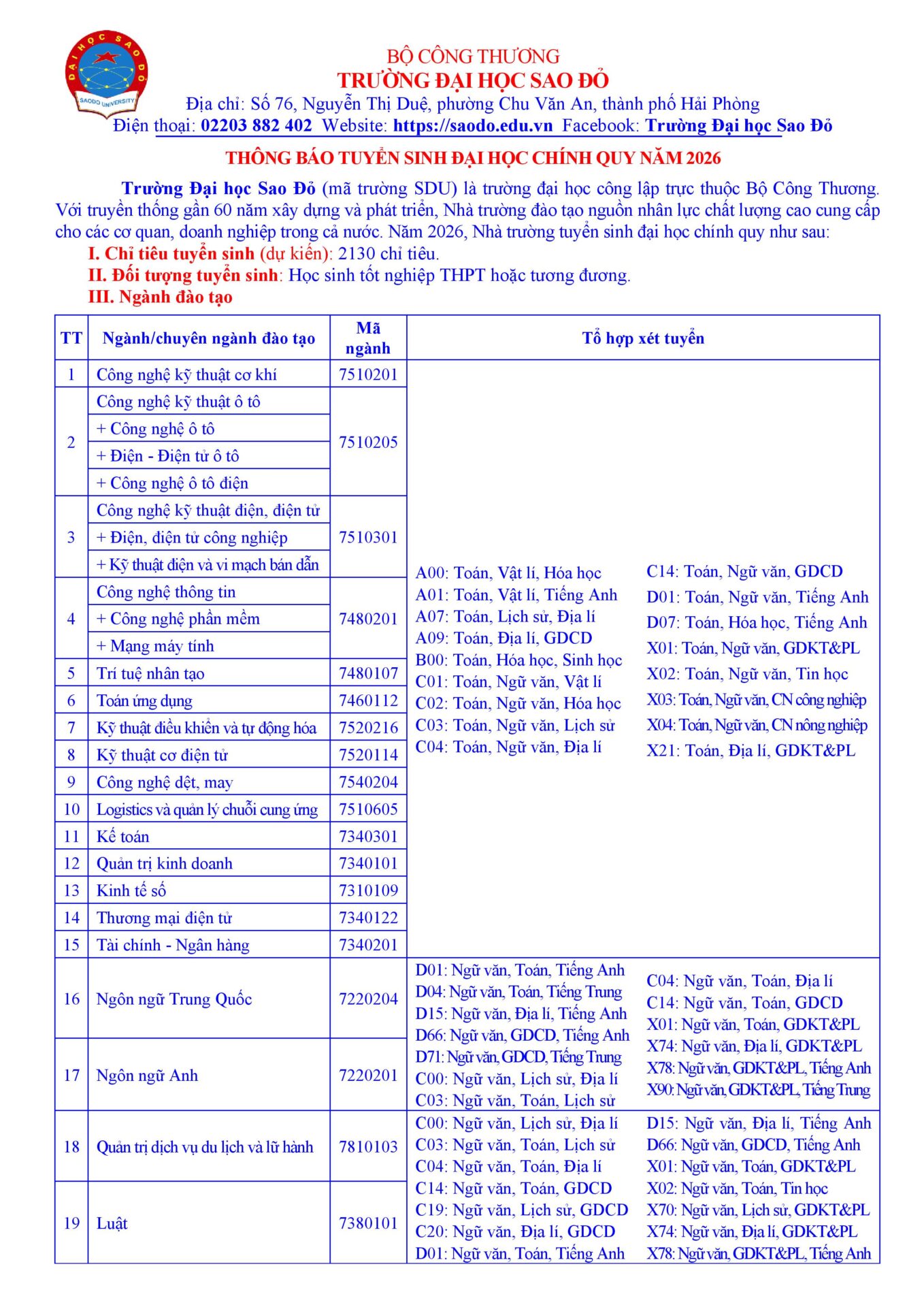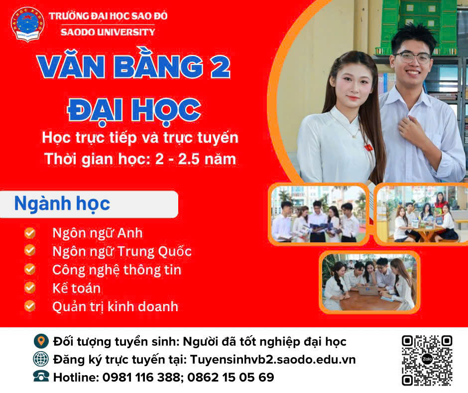 • Trường Đại học Sao Đỏ thông báo tuyển sinh đại học chính quy năm 2026 12/04/2026